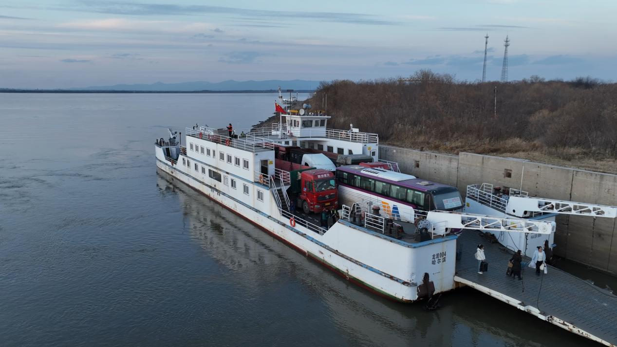 “龙渡004”轮渡船靠泊码头(同江市委宣传部供图)