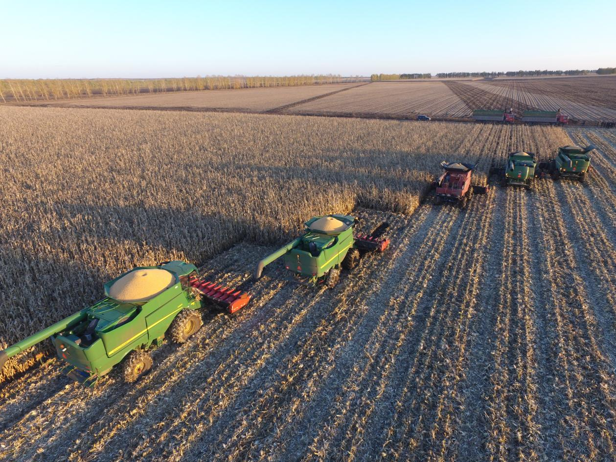 八五七农场先进农机进行高标准大豆收获(央广网发 杜立伟 摄)