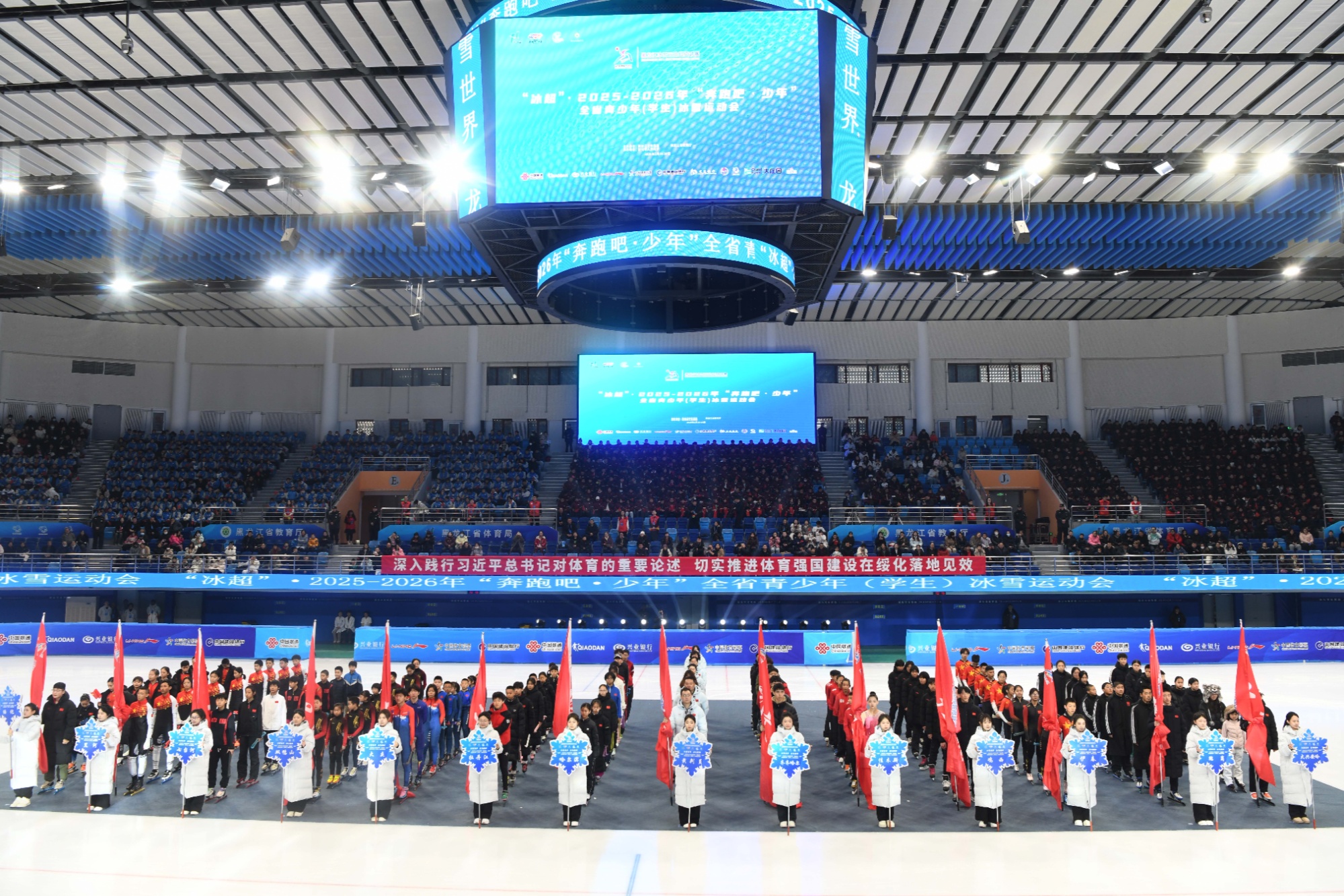 首届“冰超”2025-2026年“奔跑吧·少年”全省青少年(学生)冰雪运动会开幕式现场(龙头新闻资料图)