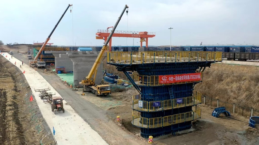 佳同铁路扩能改造工程新建铃铛麦河特大桥施工现场(图片由哈尔滨局集团提供)