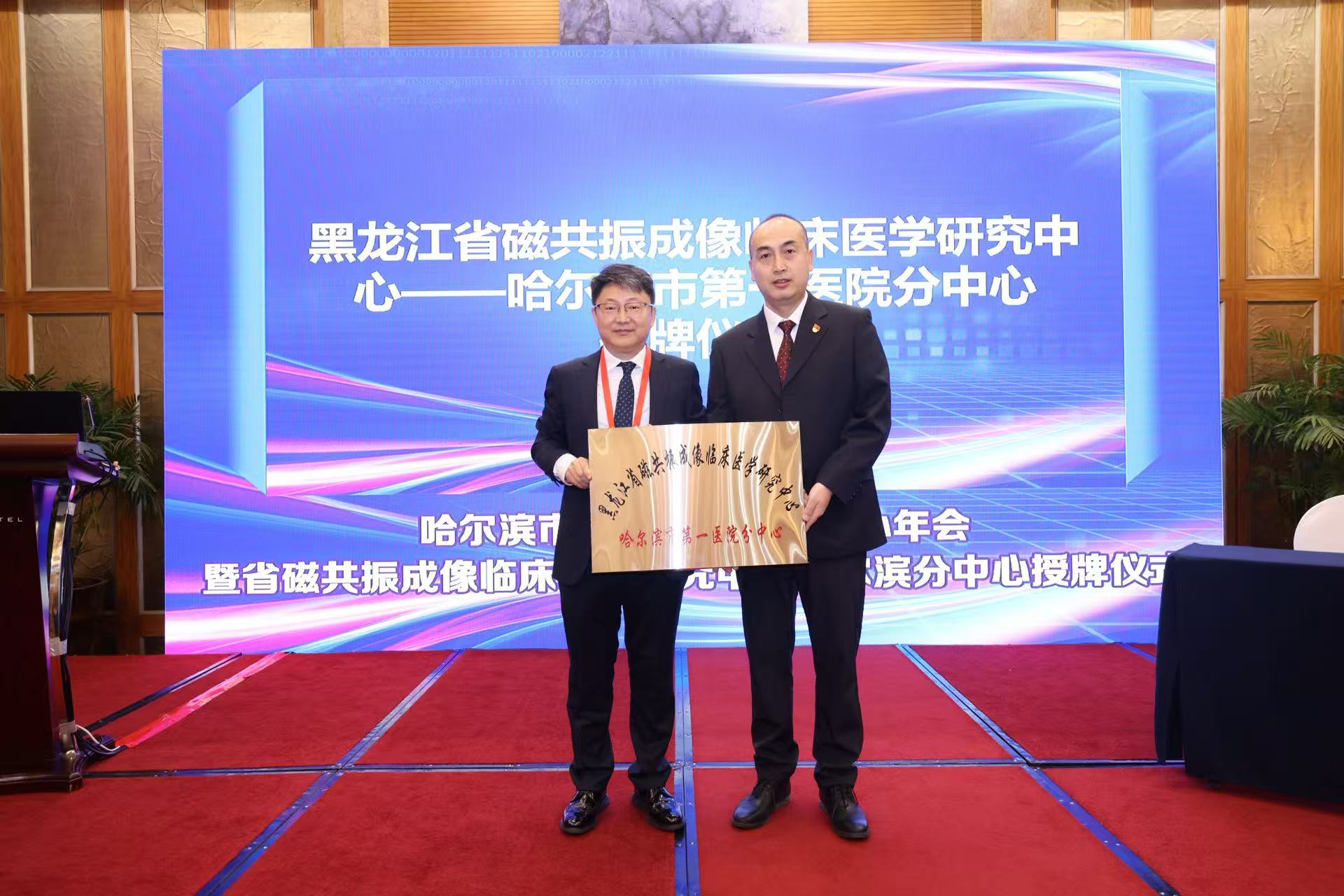 活动中,张同教授将“黑龙江省磁共振成像临床医学研究中心哈尔滨分中心”牌匾授予哈尔滨市第一医院磁共振室主任王岩。王岩表示:“分中心将聚焦磁共振前沿技术研究与临床转化,建立覆盖全市的影像诊断协作网络,为患者提供更精准的诊断服务。”