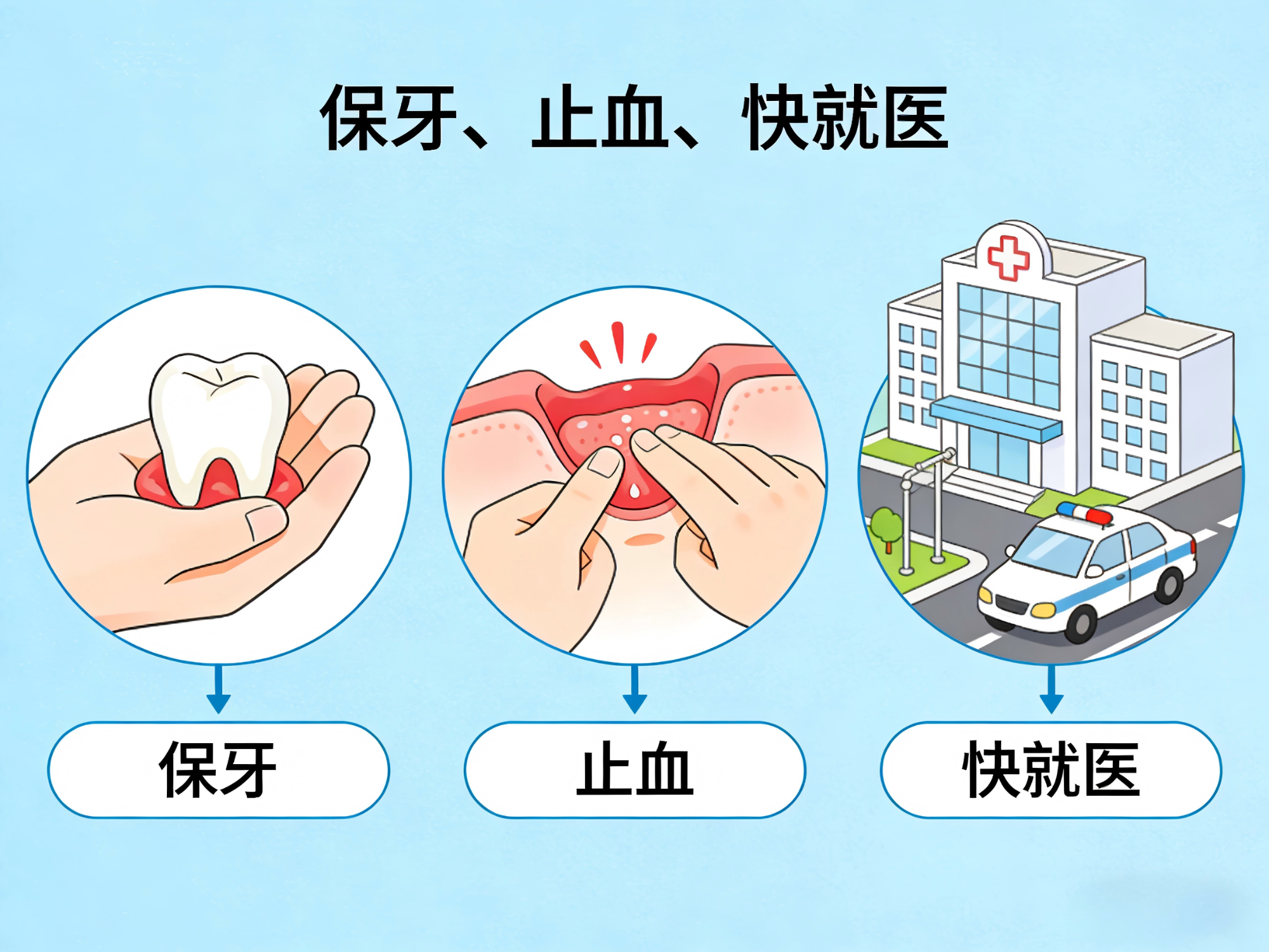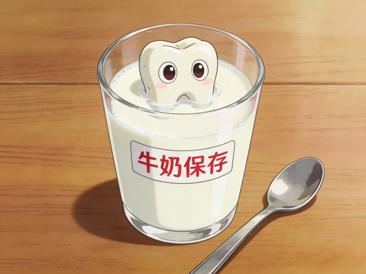 正确保存:优先尝试将牙齿轻轻放回原来的牙槽窝,然后用干净纱布或纸巾咬住固定;如果不敢放,就泡在牛奶里,或含在舌下(务必注意不要吞咽),全程别让牙齿干燥。