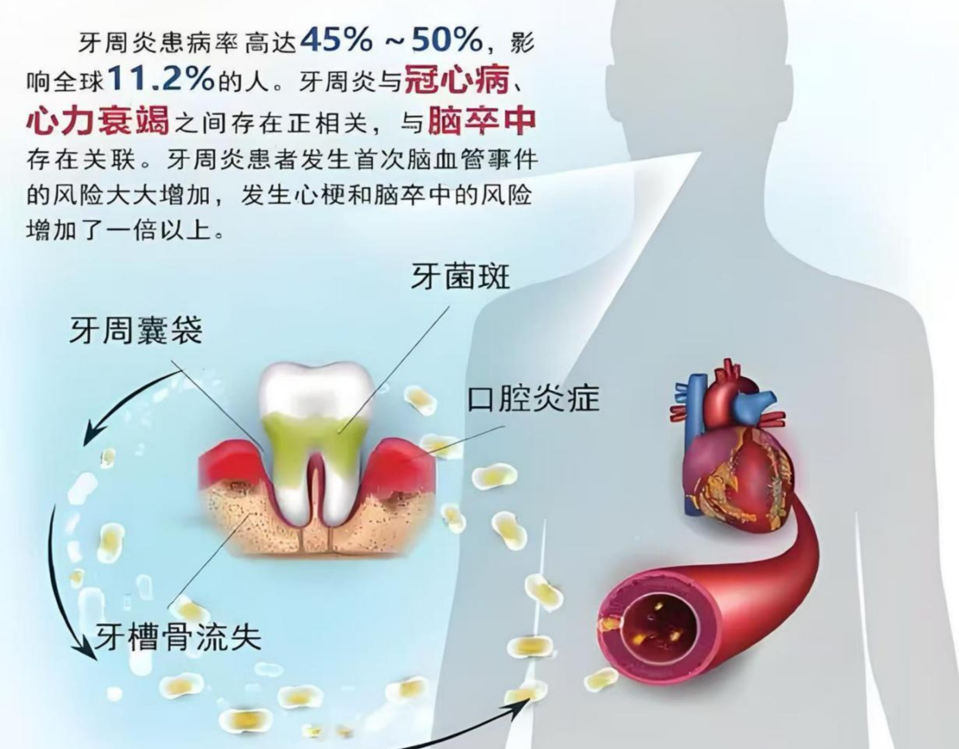 牙周病与心脑血管疾病之间,主要通过两大核心途径相互关联,共同构成对健康的双重威胁。