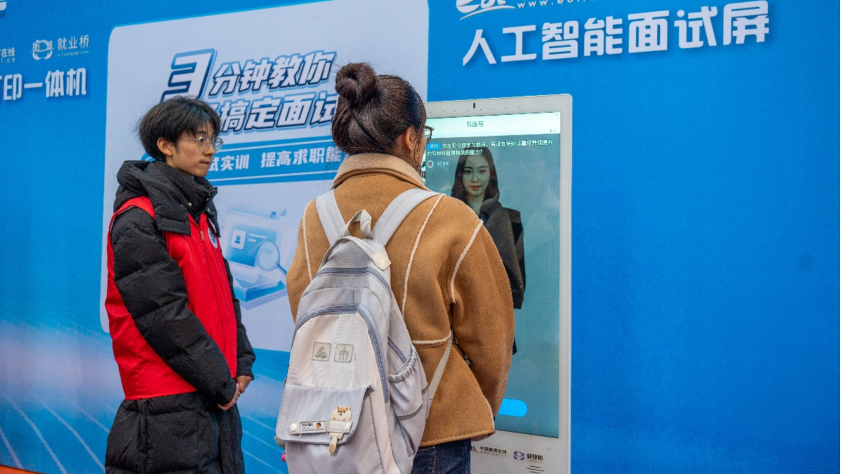 为切实提升毕业生职业竞争力,本次双选会创新性地设置“AI赋能职业能力提升专区”,为毕业生打造全方位求职助力平台。毕业生可借助人工智能技术体验模拟面试,提前熟悉面试流程、掌握面试技巧,通过生涯探索工具梳理职业兴趣与发展方向,还能便捷完成简历打印,并实时查询最新就业政策、行业动态等资讯,有效弥补求职短板,提高求职成功率。此外,现场还设置有“直播带岗”“面试指导”“石榴籽就业服务站”“大学生应征入伍宣传站”等10个实体咨询点,为毕业生提供精准化、个性化的求职服务,从简历优化、面试技巧指导到就业政策解读、参军入伍咨询,全方位满足毕业生多样化求职需求。