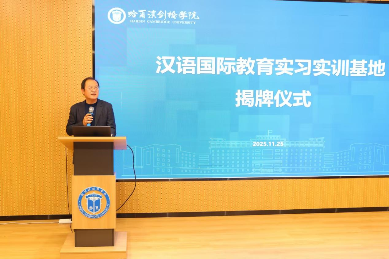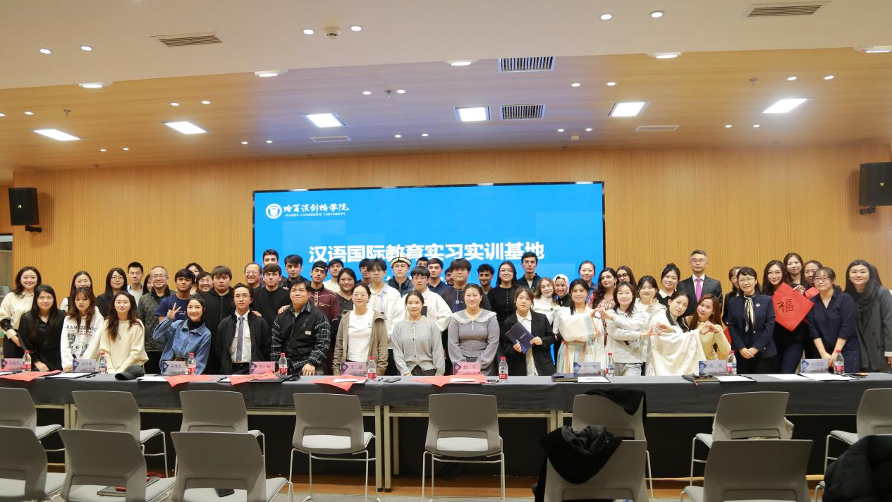 11月25日,哈尔滨剑桥学院“汉语国际教育实习实训基地”在国际教育学院揭牌成立。东方剑桥教育集团董事长、学校理事长于越,校长刘小辉,副校长樊千出席揭牌仪式。教育学院汉语国际教育专业师生代表及国际教育学院来自泰国、塔吉克斯坦、吉尔吉斯斯坦、巴基斯坦、摩洛哥等8个国家的留学生参加仪式。