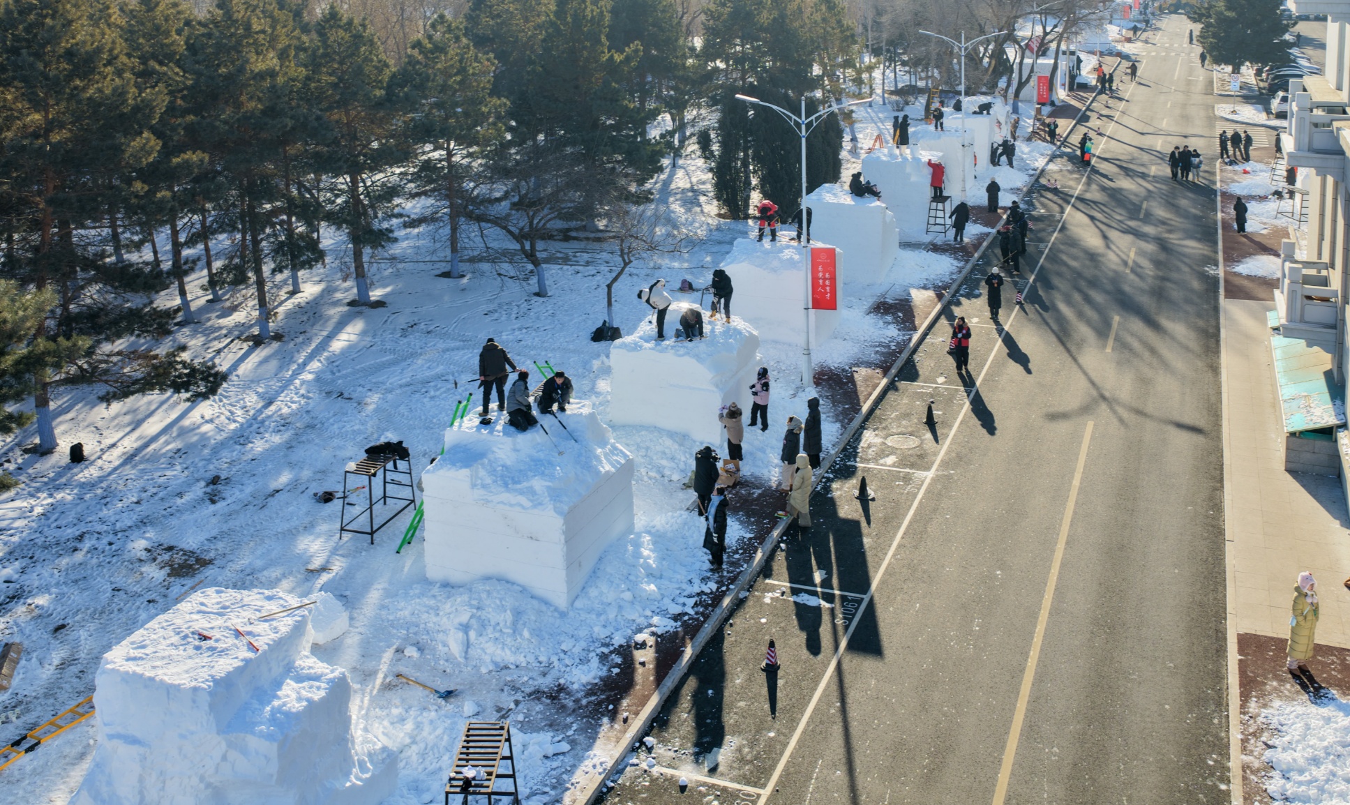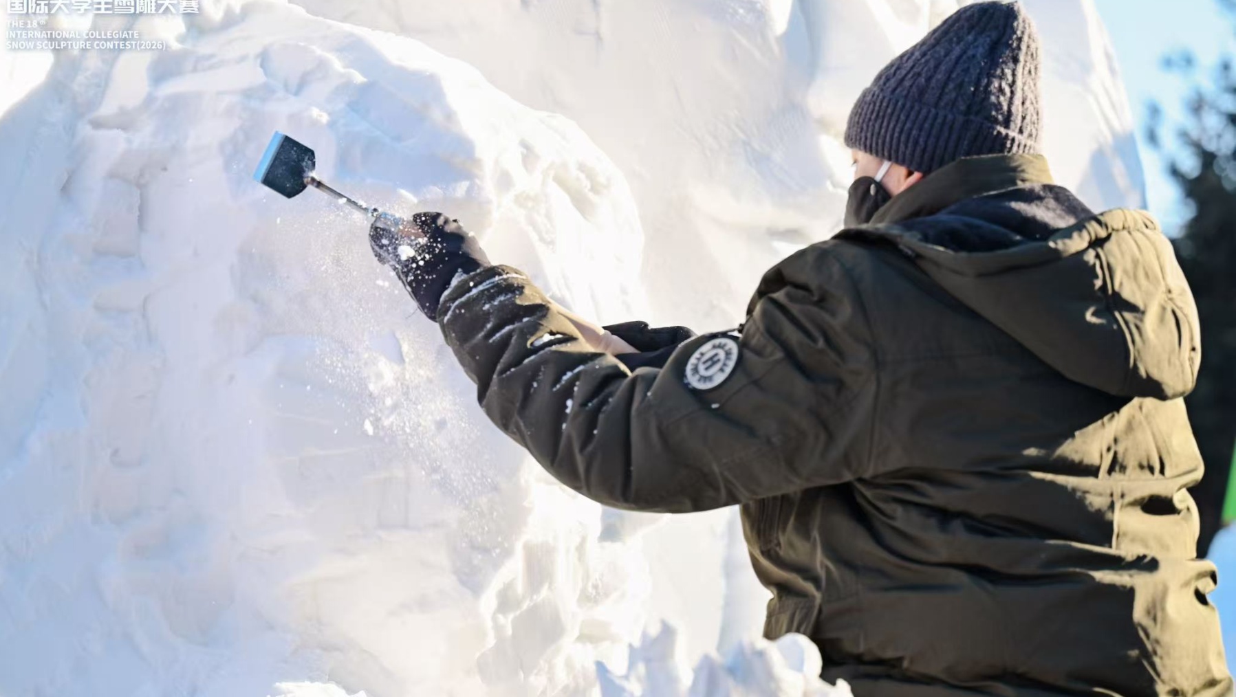 上午8时,大赛正式“开铲”。来自世界各地的青年“雪雕艺术家”齐聚赛场,围绕一方方雪块展开创作。刹那间,铲起雪扬,锯声沙沙,刀尖轻舞,安静的雪场化作一片热情洋溢的创作海洋。