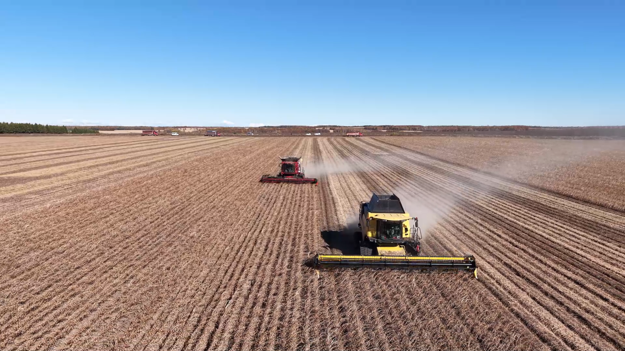 在黑龙江省长水河农场第四管理区的大豆地号里,大型联合收割机往来穿梭,切割、脱粒、清选一气呵成,饱满的豆粒源源不断涌入接粮车,现场忙碌而有序。