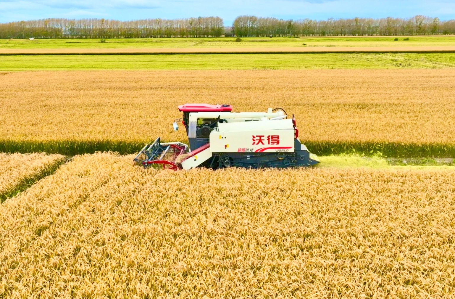 据统计,秋收期间,农场出动各类农机具2000余台,机械化作业率达100%,日均收割水稻超5万亩。
