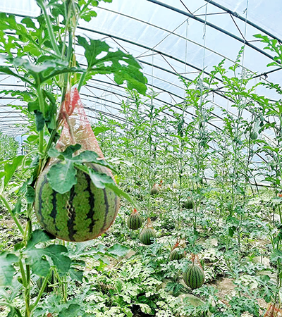 大棚里吊起的西瓜