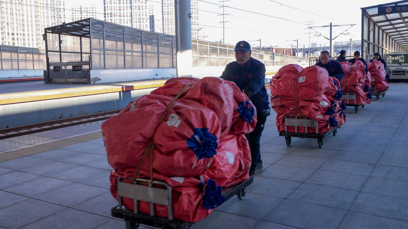 11月3日上午9时,G1276次高铁列车装载440件“双11”网购快件,从哈尔滨西站准时发出,驶往武汉,这标志着中国铁路哈尔滨局集团有限公司(以下简称“哈尔滨局集团公司”)“双11”网购高峰期快运服务已进入常态化高效运行阶段。