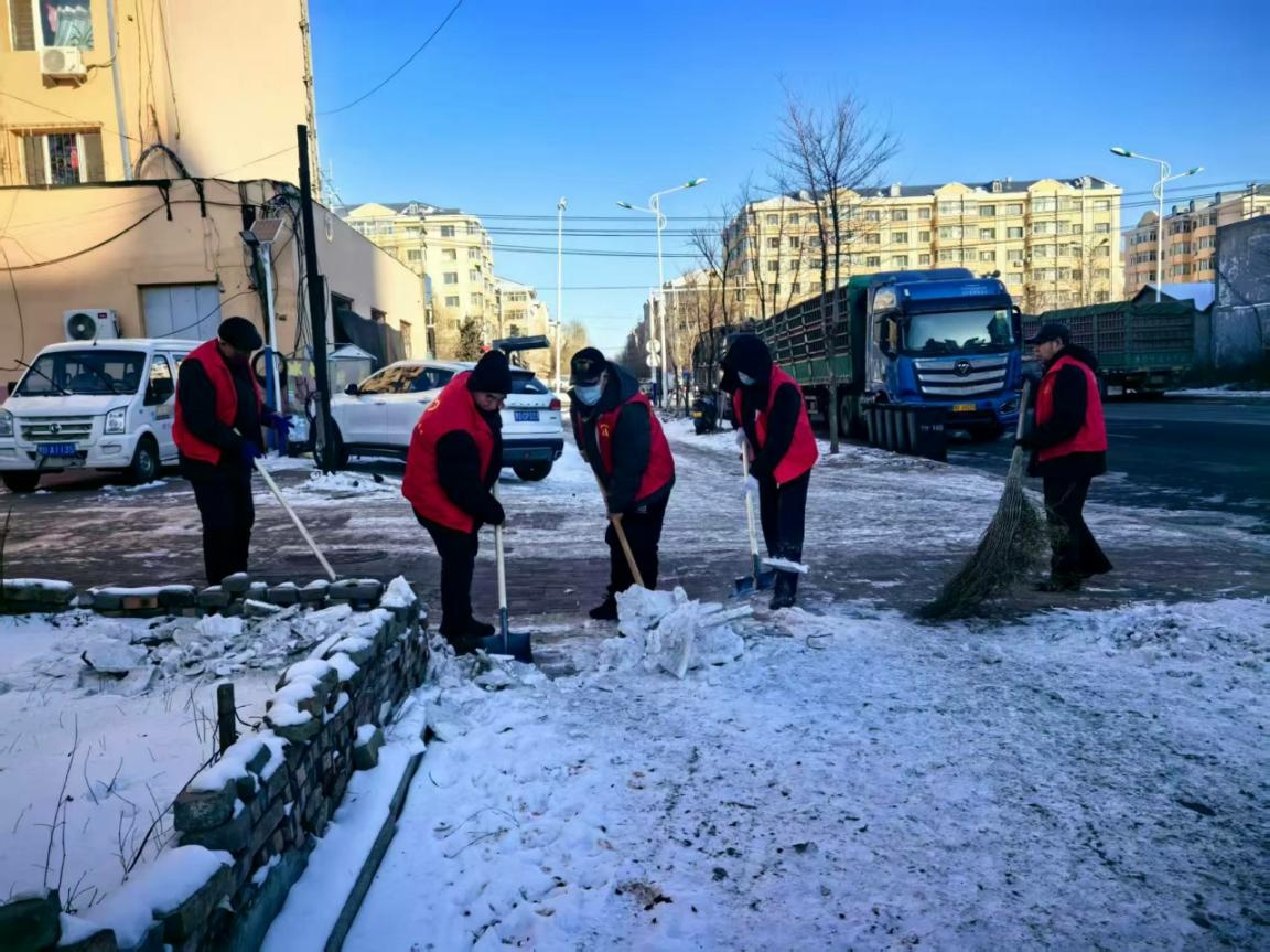 银龄党支部组织清雪(佳木斯市郊区云环街道供图)