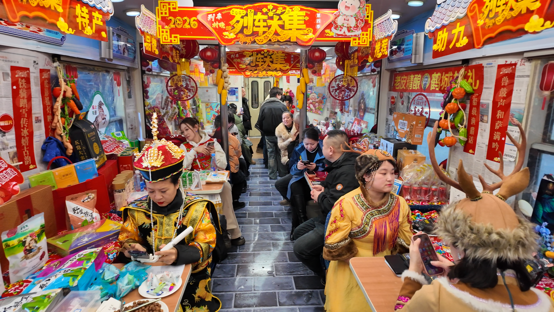 列车厢里的消费新场景,不仅方便了归乡人,更吸引了外地游客的目光。来自广东顺德的黄女士带着孩子赴大兴安岭旅游,品尝过北大荒矿泉水后当即下单:“在列车上能买到这么优质的地方特产,还能直接快递回家,既新奇又省心,这趟旅途收获满满。” 非遗展演的锣鼓声中,扫码支付的提示音此起彼伏,试吃装的鲜香与酸菜汤的热气交织,构成了春运里最鲜活的 “消费场景”。