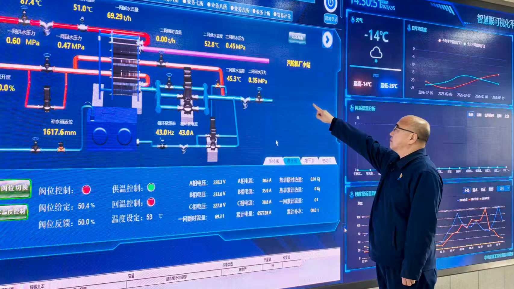供热公司监控大屏(哈尔滨热电有限责任公司供热公司供图)