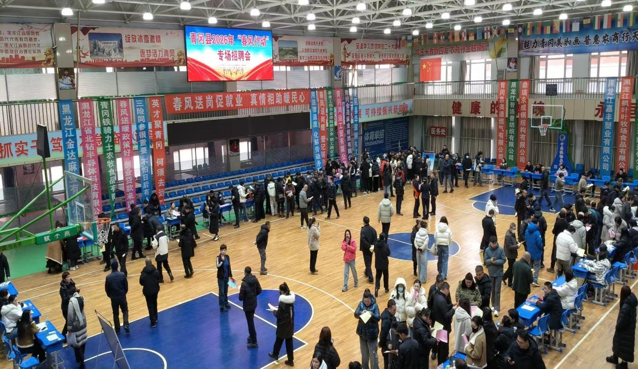 2月27日,年味尚未散去,绥化市青冈县体育馆内已是人头攒动。2026年“春风行动”专场招聘会在这里火热开场。