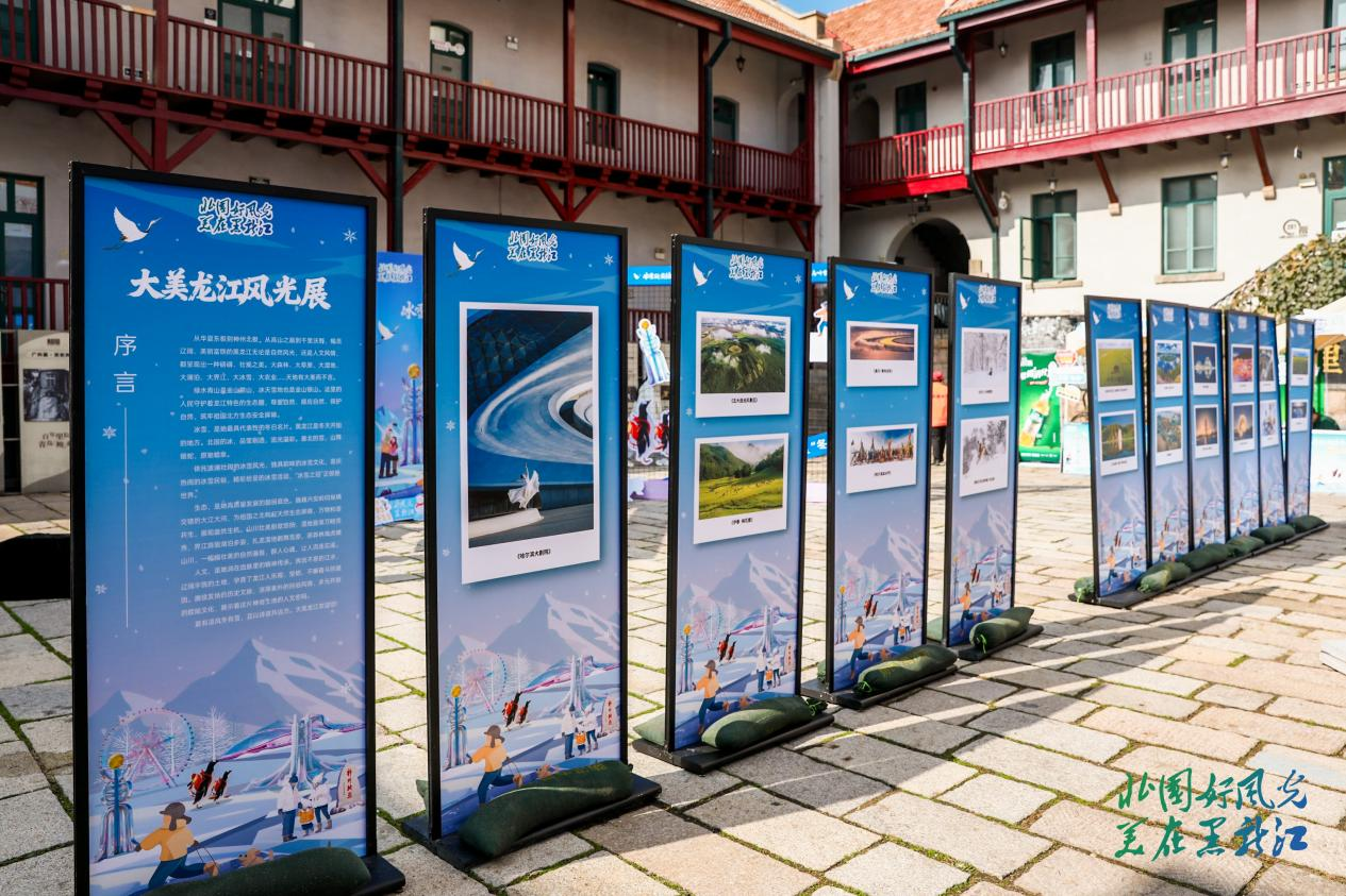 在广兴里古朴的庭院中央,大美龙江风光展将黑龙江四季流转的壮美风光浓缩于方寸之间,令人流连忘返。