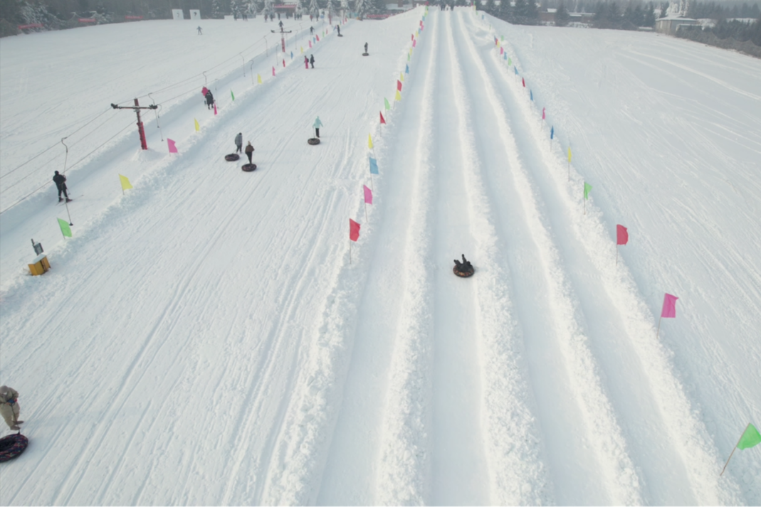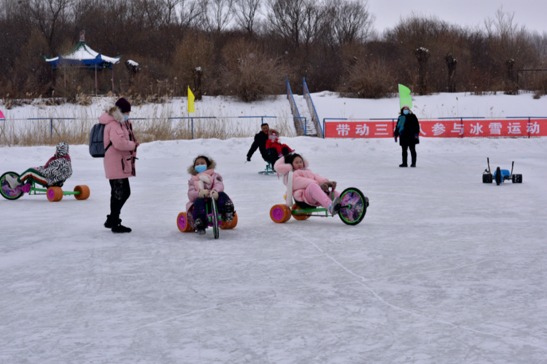 游客可体验雪地摩托的风驰电掣、冰上自行车的轻盈飘逸,或是重温抽冰尜、踢雪地足球的儿时记忆。
