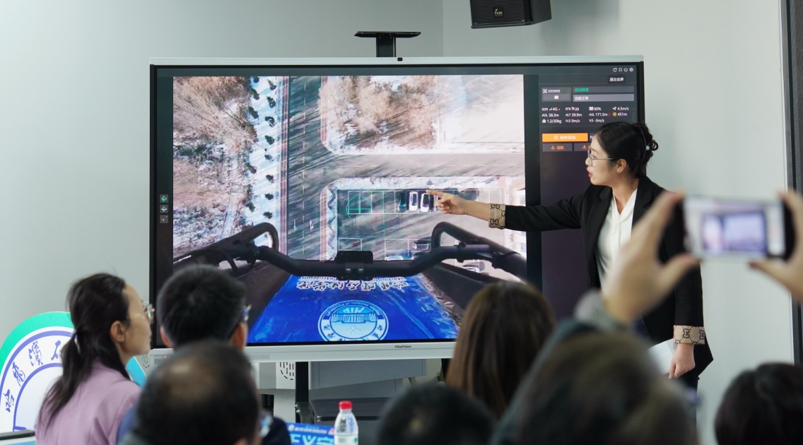 现场观看无人机飞行实况(哈尔滨石油学院供图)