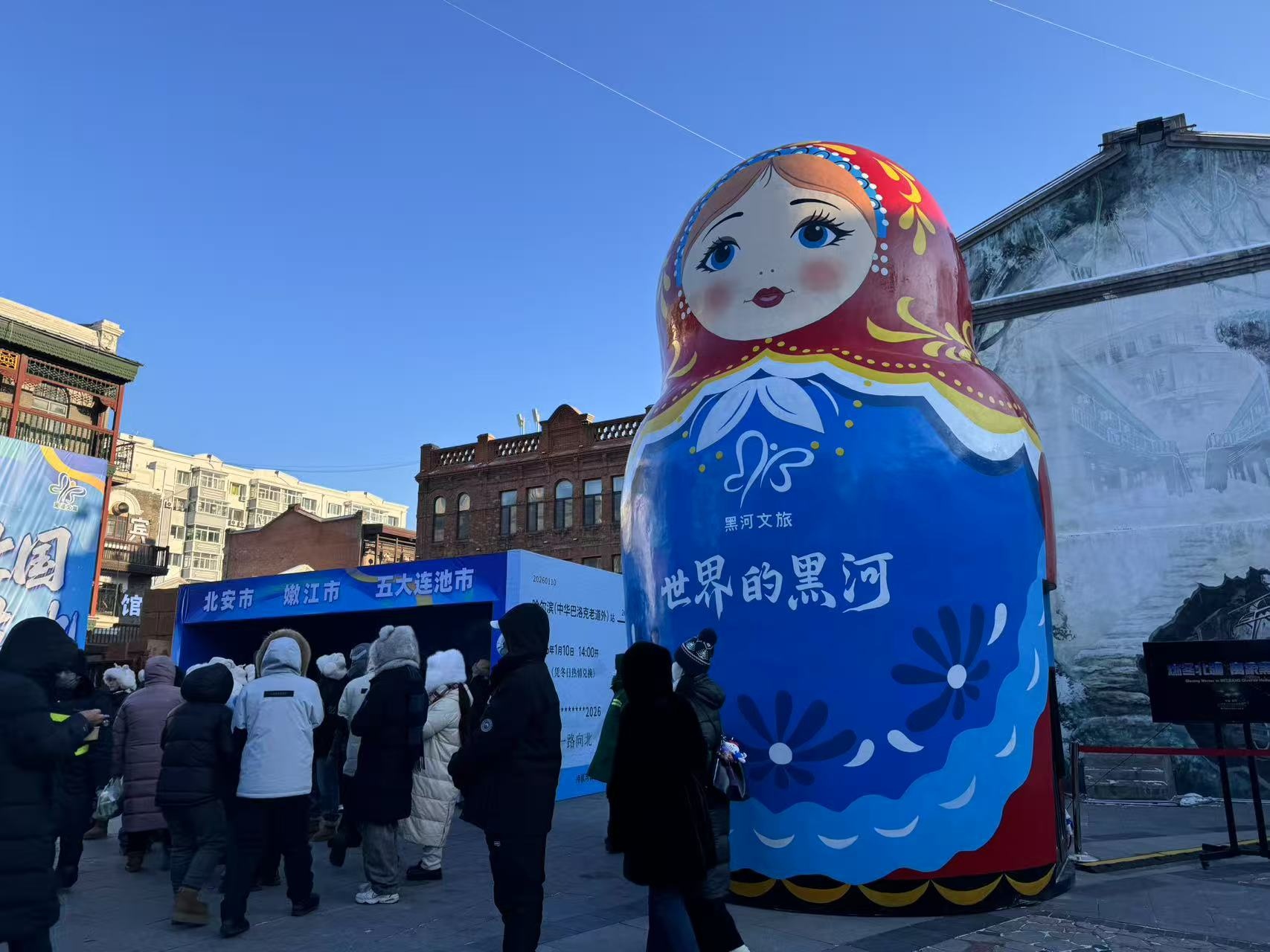 巨型套娃“做客”冰城中华巴洛克(黑河市文化广电和旅游局供图)