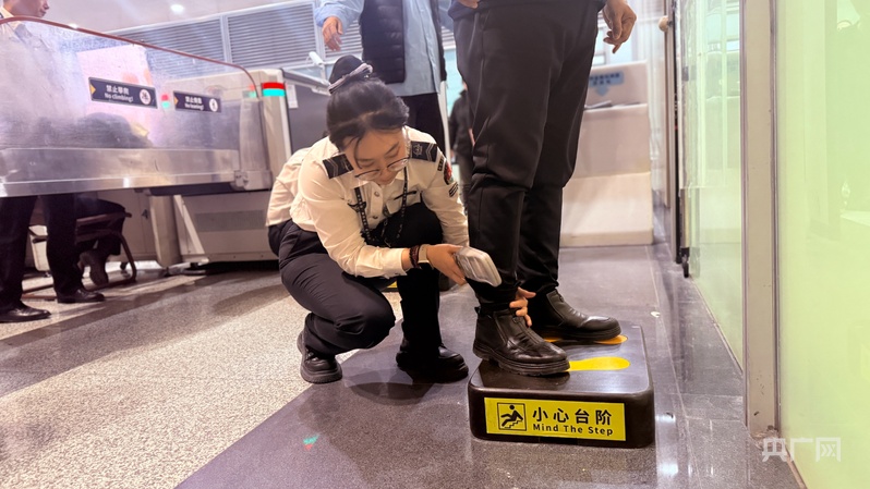 为旅客做人身检查(央广网记者庞淼 摄)