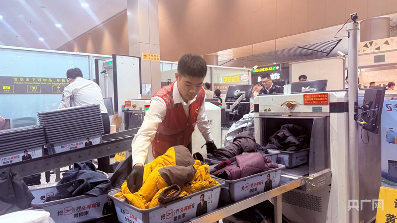 当前,春运已进入旅客返程关键阶段。机场航站楼内,安检工作人员忙碌不停,引导声、探测器提示声与行李箱滚动声交织在一起。工作人员以专业高效的值守,筑牢旅客旅途第一道防线。