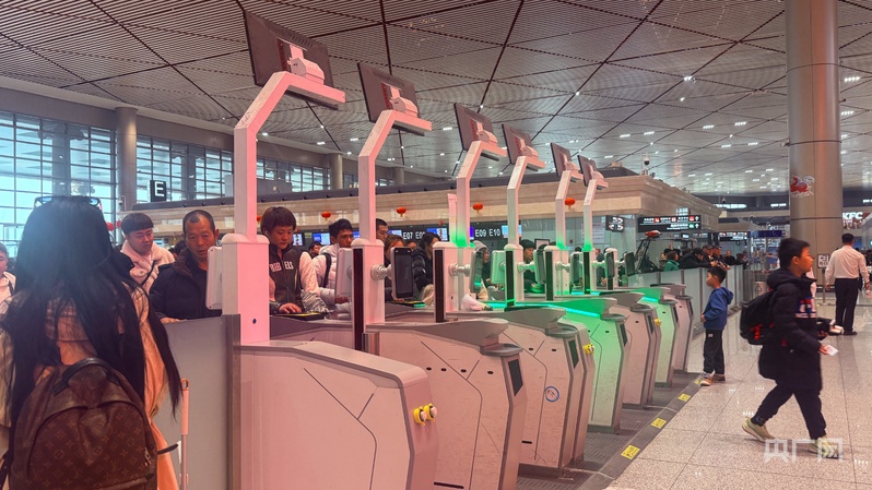 安检方面,为减少旅客排队等待时间,值机柜台、安检通道全部开放,并通过“智慧机场”系统实现旅客全流程自助服务。增加“红马甲”志愿者,为旅客提供问询指引等服务。“我们全员在岗、昼夜值守,全力应对连刷纪录的客流高峰。”王璐介绍,通道过检率已由原来的每小时140人提升至每小时190人;极限高峰时,26条通道全部开放,可实现每小时4000人过检。